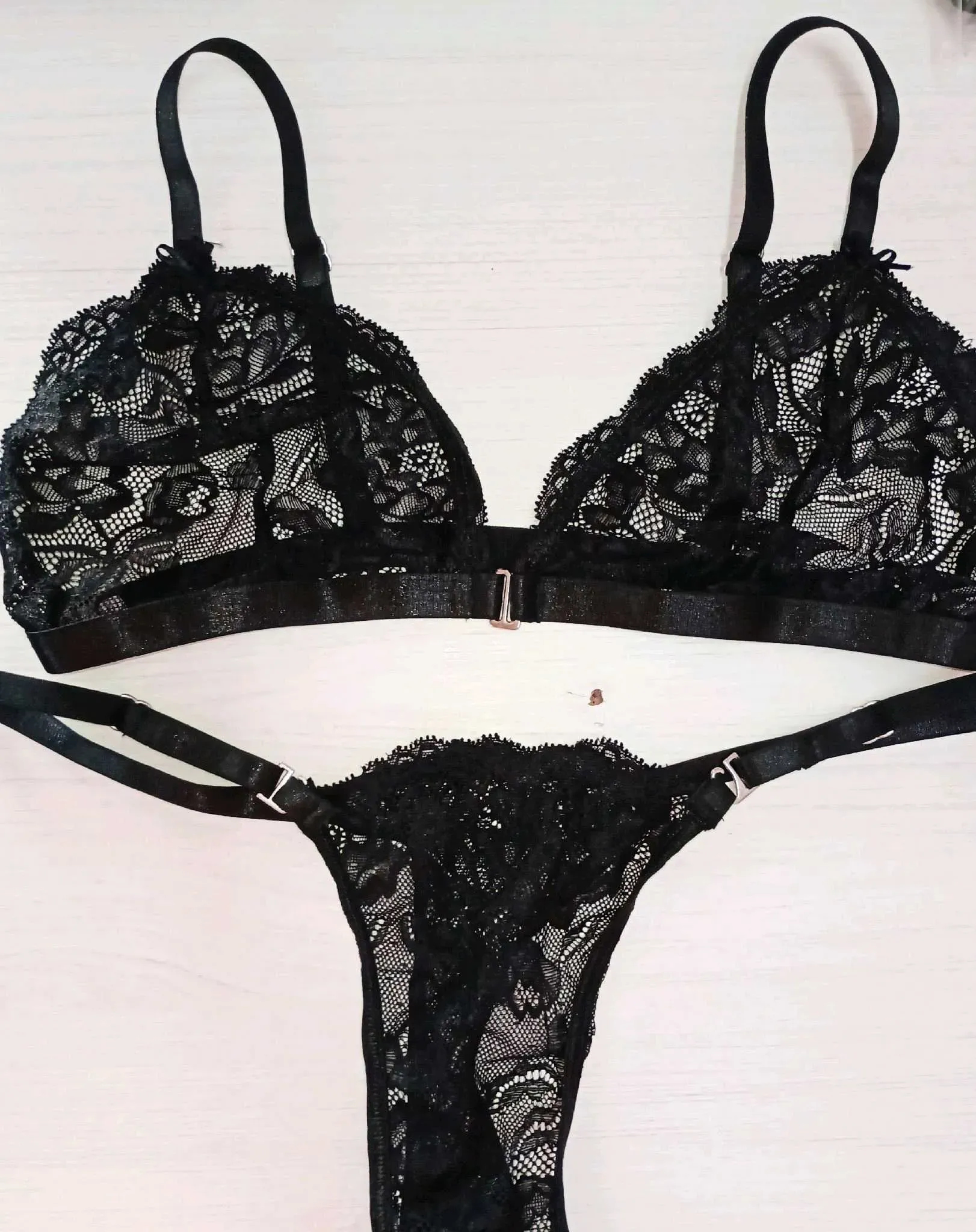 Conjunto desmontable de encaje con corpiño y less regulables, ideal para lucir elegante y cómoda. El corpiño desmontable y los less ajustables ofrecen versatilidad y comodidad. Confeccionado con delicado encaje, este conjunto es perfecto para realzar tu feminidad.