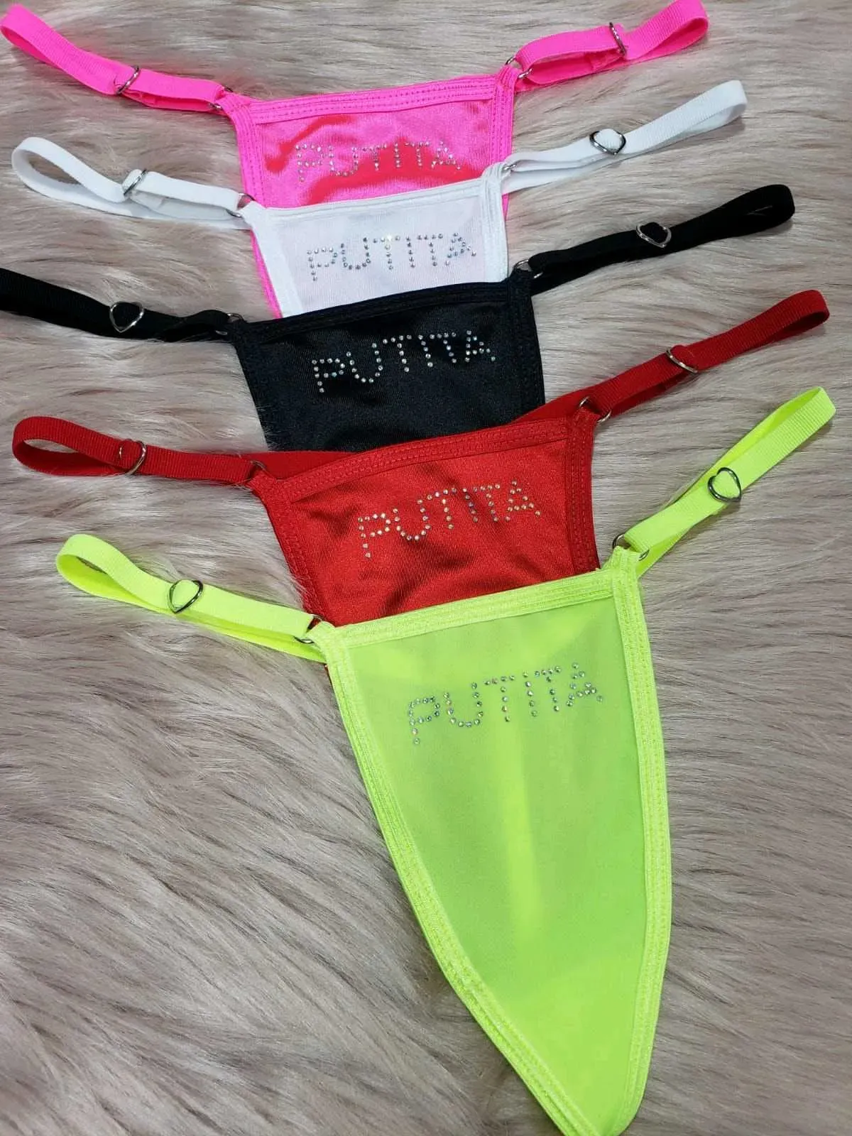 Hilo dental 'Putita' con estampado de Strass, ideal para lucir sexy y divertida. Ajustable para mayor comodidad. Disponible en una variedad de colores para combinar con tu estilo. ¡Destaca con este hilo dental único y atrevido!