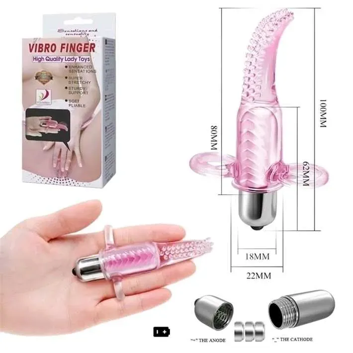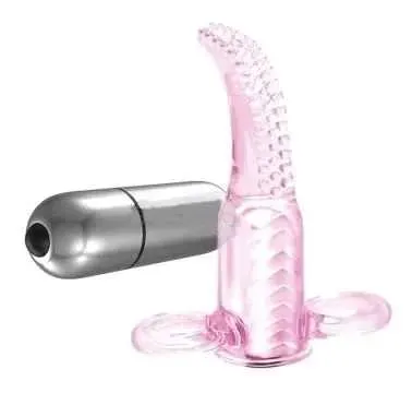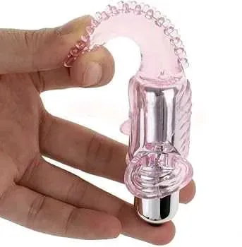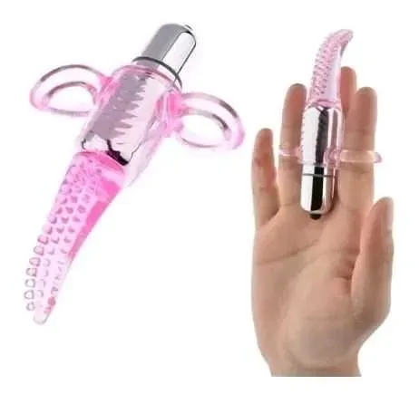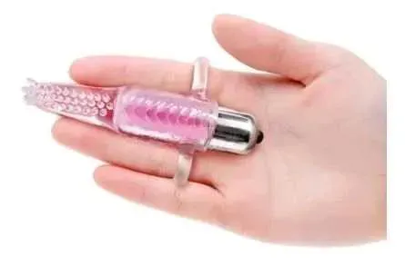 Vibrador/estimulador para clítoris que se utiliza en los dedos. Material siliconado flexible con textura para mayor estimulación. Funciona con tres pilas botón incluidas. Con bolsita para guardar. 10 patrones de vibración.